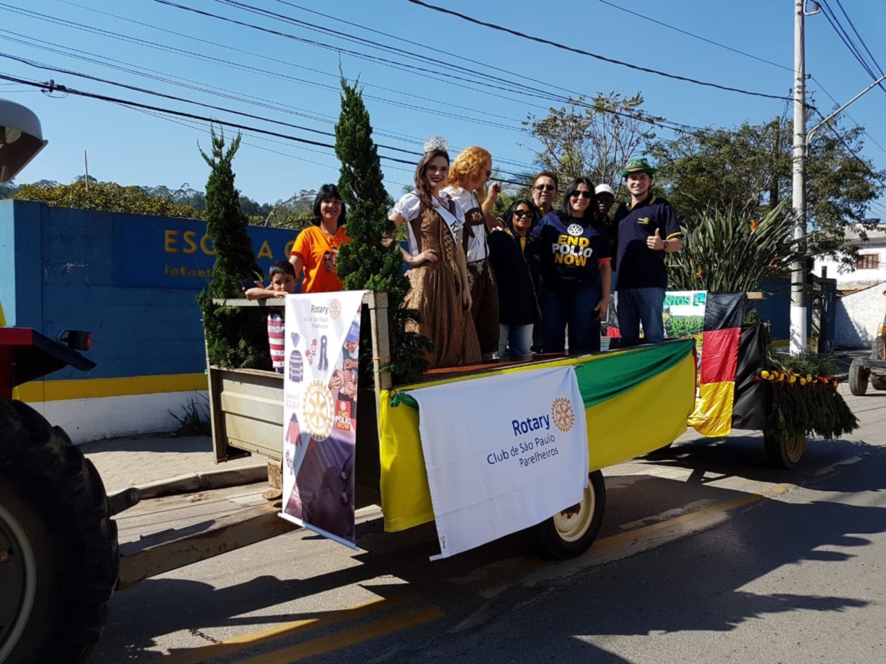 O Rotary Club SP - Parelheiros participou no ultimo domingo 08/07 do 13º COLONIAFEST - Desfile de produtores rurais e cavaleiros em comemoração aos 189 anos da fundação do Bairro da Colonia por imigrantes alemães. Em desfile aberto pelo bairro divulgamos a campanha de vacinação, a necessidade de imunização das crianças. A região tem dificuldade de cobertura por ser zona rural mesmo sendo servida por duas UBS - Unidades Básica de Saúde e PSF - Programa Saúde da Família, os moradores residem em locais distantes e de difícil acesso.