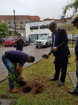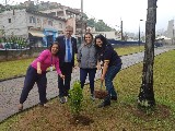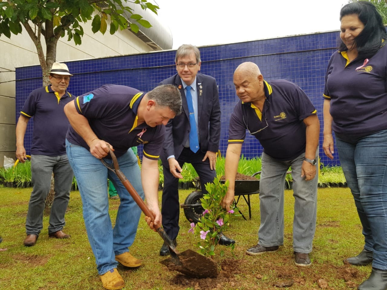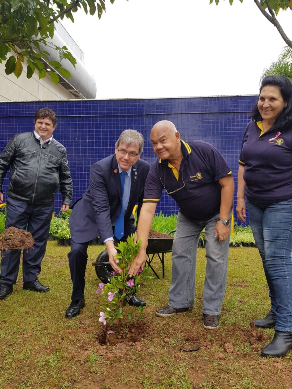 Projeto Outubro Rosa realizado no d ia da Visita Oficia l do Gov.Catlos Torci. Ocorreu no espaço do Céu Parelheiros u.idade educacional que atende 2500 alunos tendo como ações plantio de árvores MANACAS e mudas de azaleias rosas, colocaca o de faixa de conscientização para prevenção e entrega de 3000 folhetos para envio nas agendas escolares.